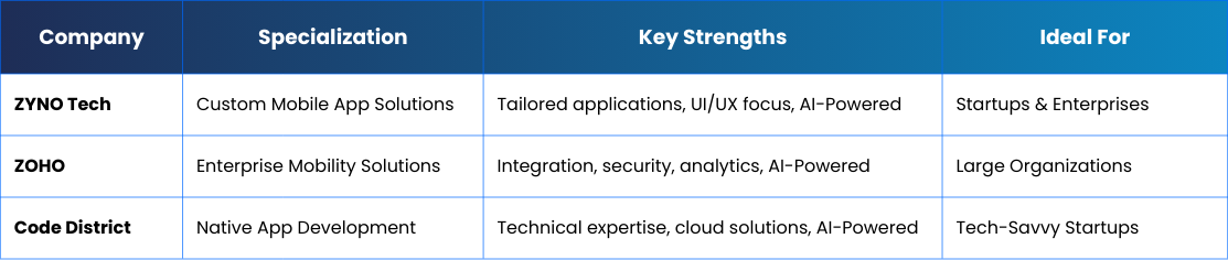 ZOHO is a global technology company offering a suite of software solutions, including mobile app development services. Their approach combines innovation with functionality, ensuring businesses get apps that are both user-friendly and efficient, including AI-Powered automation features.