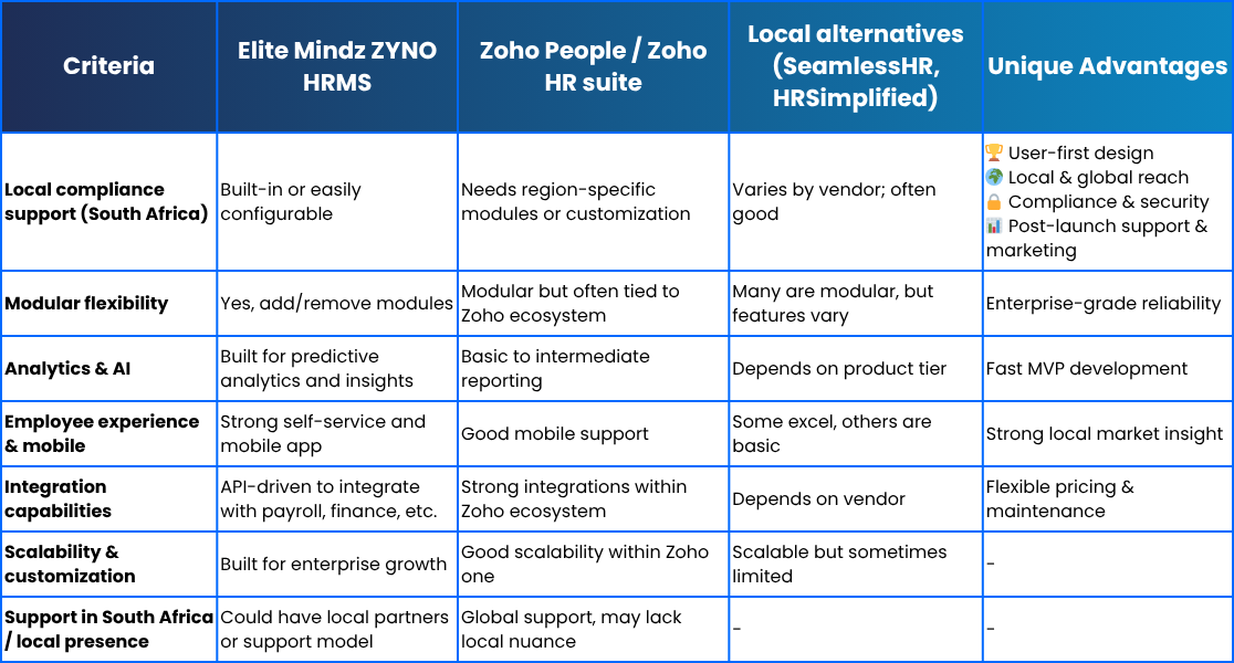 If you’re ready to transform your HR function, begin now—book your strategy session with Elite Mindz, the best software development company in Delhi and discover ZYNO HRMS for your South African team.